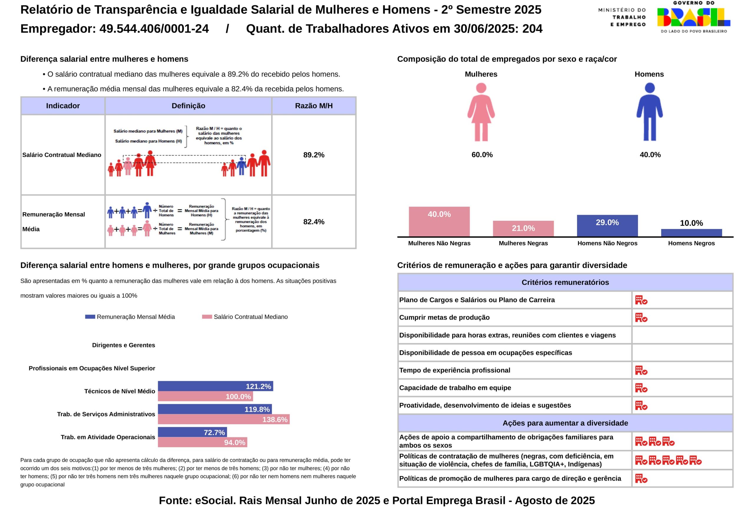 Aqui na Soroplast, a transparência é um compromisso. Com isso, estamos comprometidos com a igualdade na remuneração, garantindo que não haja discriminação baseada no gênero. Todos os nossos colaboradores, independentemente do sexo, recebem salários justos e competitivos, refletindo o valor de suas contribuições para a organização. Acreditamos firmemente que a igualdade salarial é essencial para promover um ambiente de trabalho justo e inclusivo, onde todos possam prosperar e alcançar seu pleno potencial.